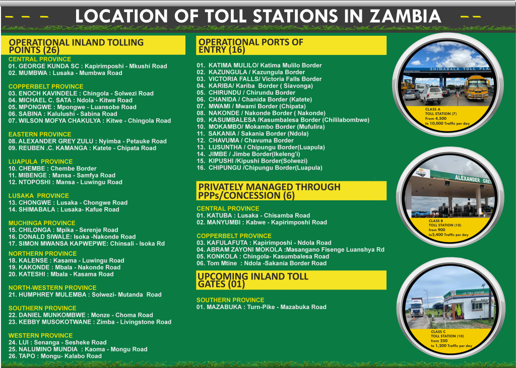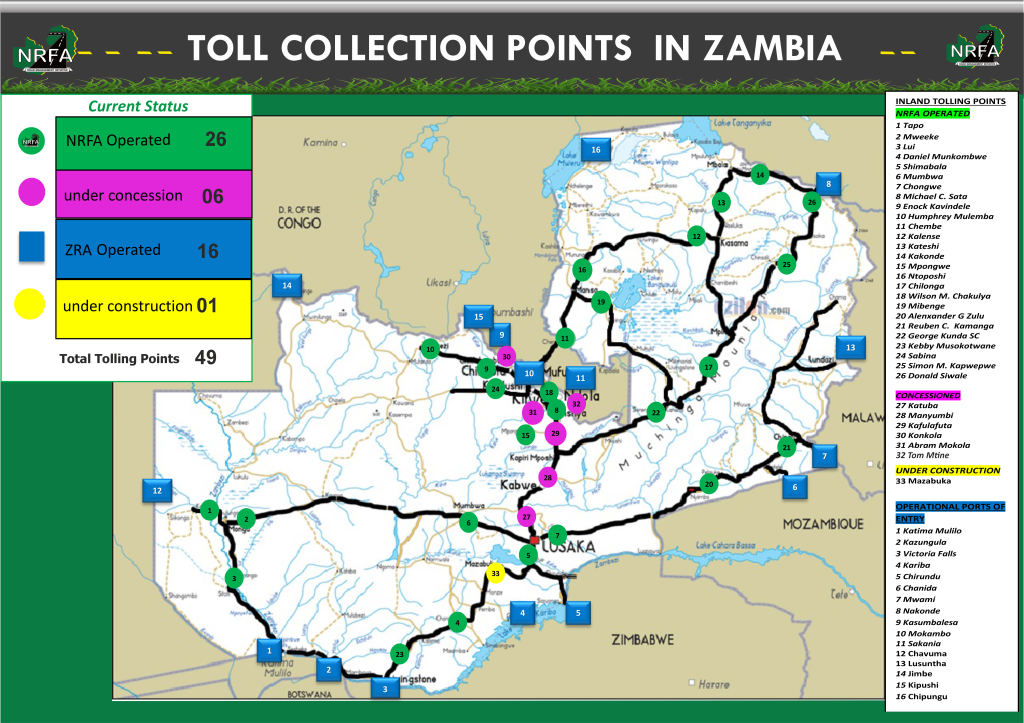 NRFA operated Toll Gates including Katuba, Manyumbi and Kafulafuta on Lusaka-Ndola Road operated by MOIC-LN